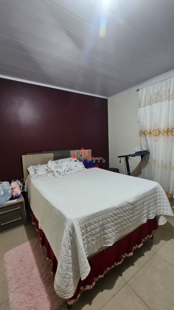 Casa de alvenaria medindo aproximadamente 150m² com 3 quartos, sala, cozinha, banheiro, lavanderia, churrasqueira, garagem para 2 carros + edícula com área de festas, cozinha, banheiro, deposito e espaço para piscina. Terreno medindo 308m² todo murado e cercado. Localizada no Bairro São Cristóvão na Cidade de Chopinzinho Pr. Obs.: cozinha sob medida, placa solar, portão automatizado